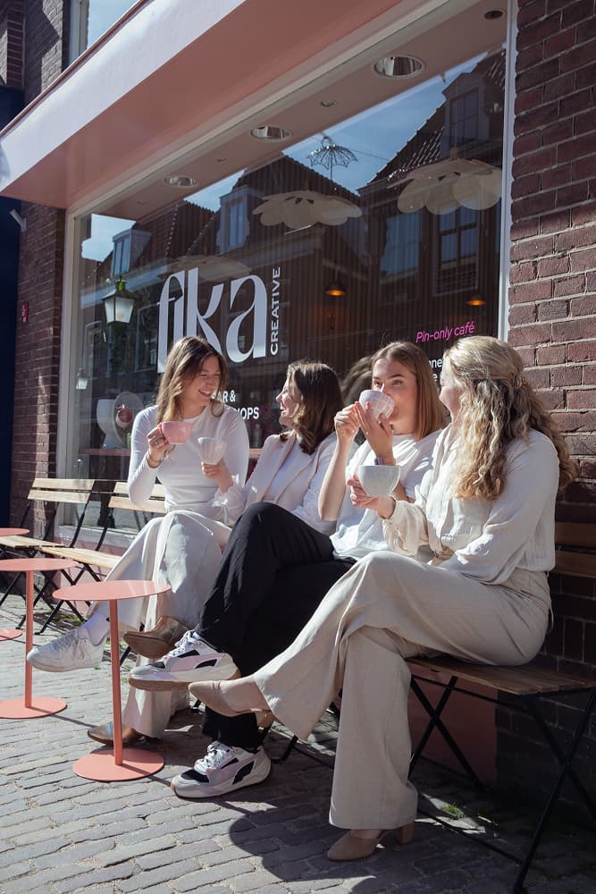 FIKA is het Zweedse geluksmoment: koffie, gebak en samen genieten. Geïnspireerd door mijn Zweedse roots en het ultieme geluksmoment Fika, ontstond FIKA Creative: een roze café waar je de drukte loslaat, jezelf oplaadt en je creativiteit laat stromen.